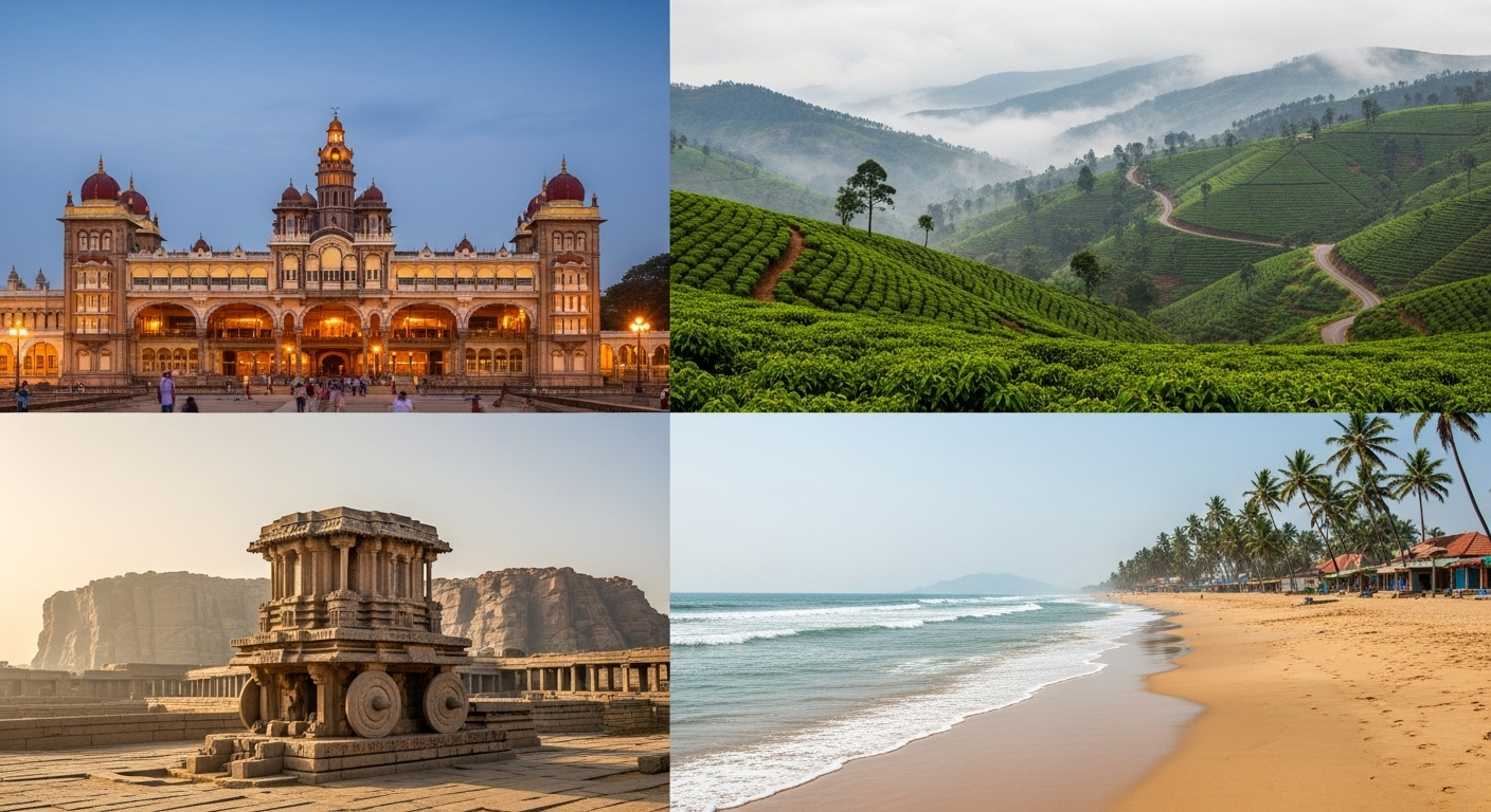 Imagine a land where ancient ruins whisper tales of bygone eras. Verdant coastlines entice with their serene beauty. The aroma of rich coffee plantations fills the air. This is Karnataka, a treasure trove of cultural heritage, natural splendor, and adventure-packed destinations, welcoming you to explore its enchanting mosaic.